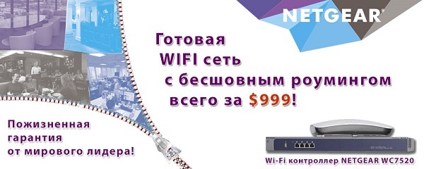 Специальное предложение от компании NETGEAR – комплект из Wi-Fi контроллера WC7520 и 3 точек доступа позволят вам развернуть полнофункциональную беспроводную сеть всего за $999!